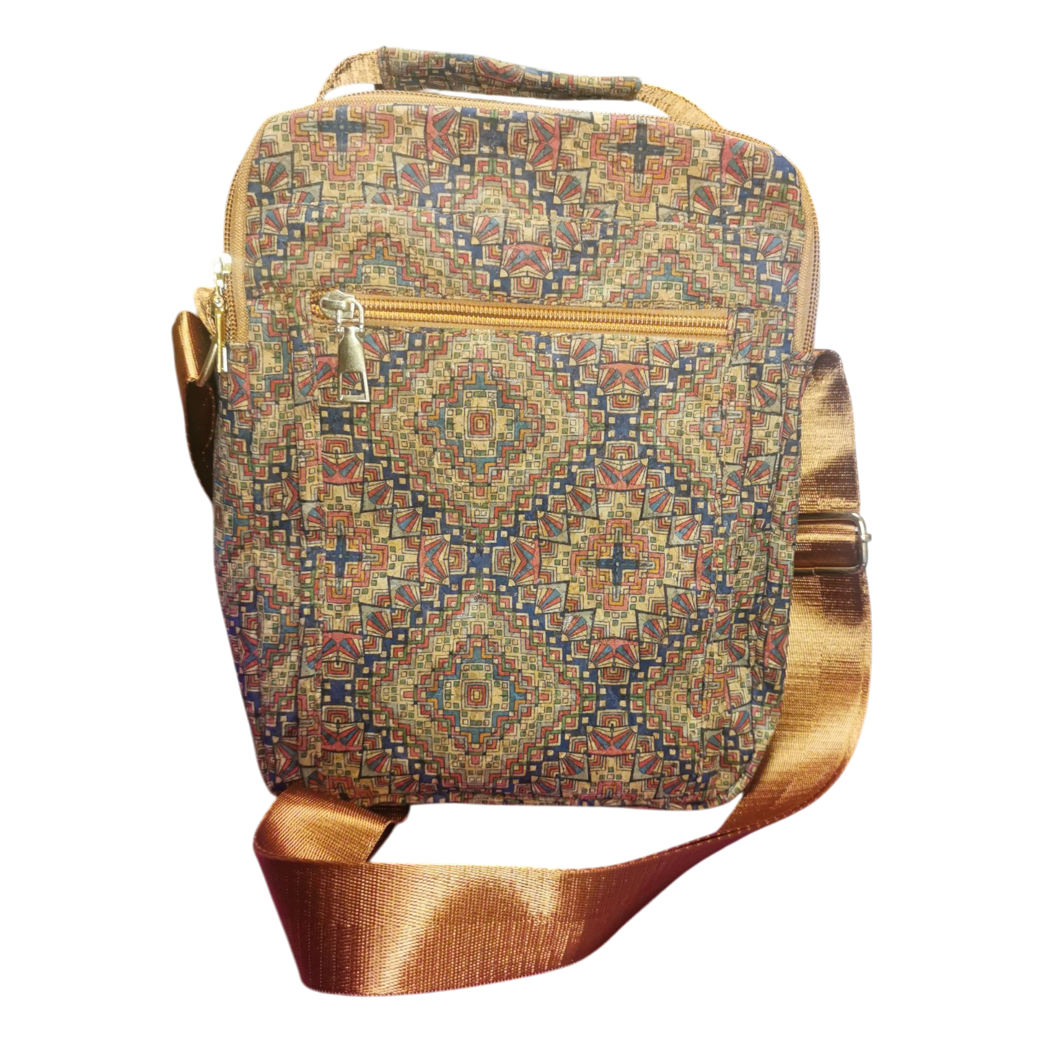 Bolso de corcho bandolero grande con tira ajustable, dos compartimentos amplios y bolsillo externo con zipper. Muy ligero y espacioso, ideal para usar cruzado a diario.