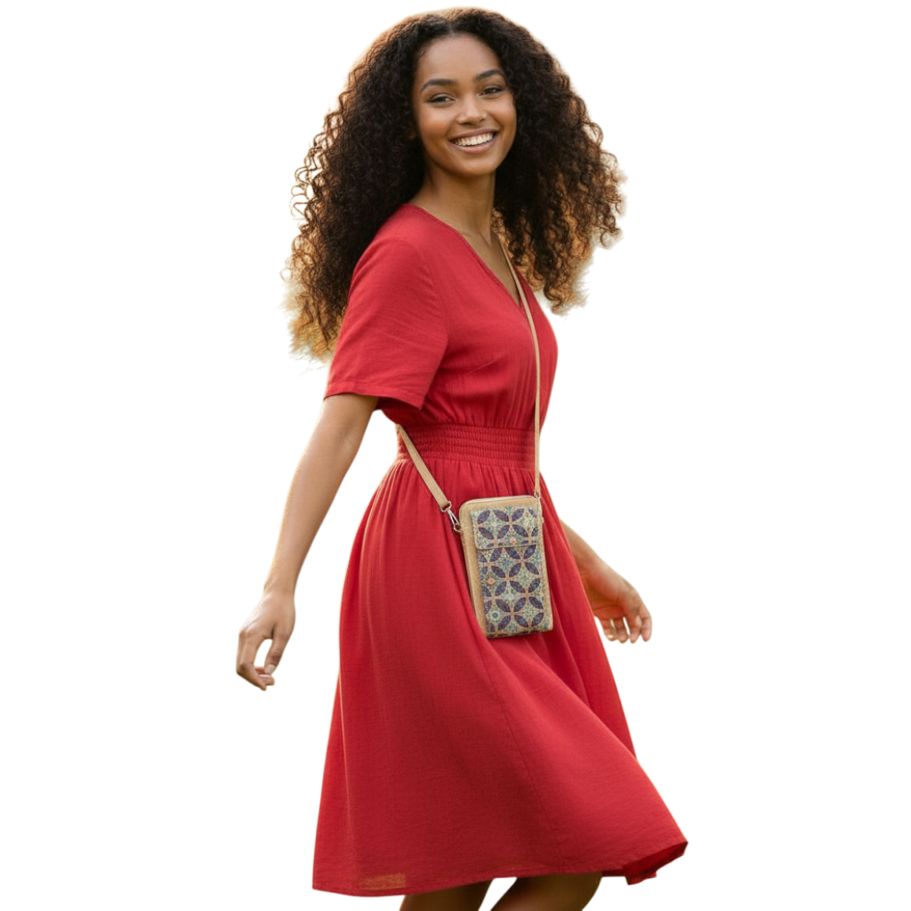 Este bolso está fabricado en corcho natural, un material sostenible, suave al tacto y muy resistente. Gracias a ello, el bolso de corcho bandolero grande es sorprendentemente ligero incluso cuando lo llevas lleno. Además, el corcho es fácil de limpiar y repele ligeramente la humedad, por lo que es una opción práctica para la ciudad, viajes o salidas de fin de semana.