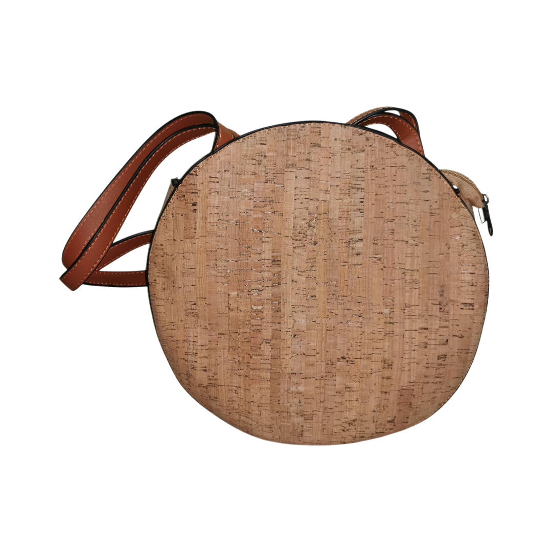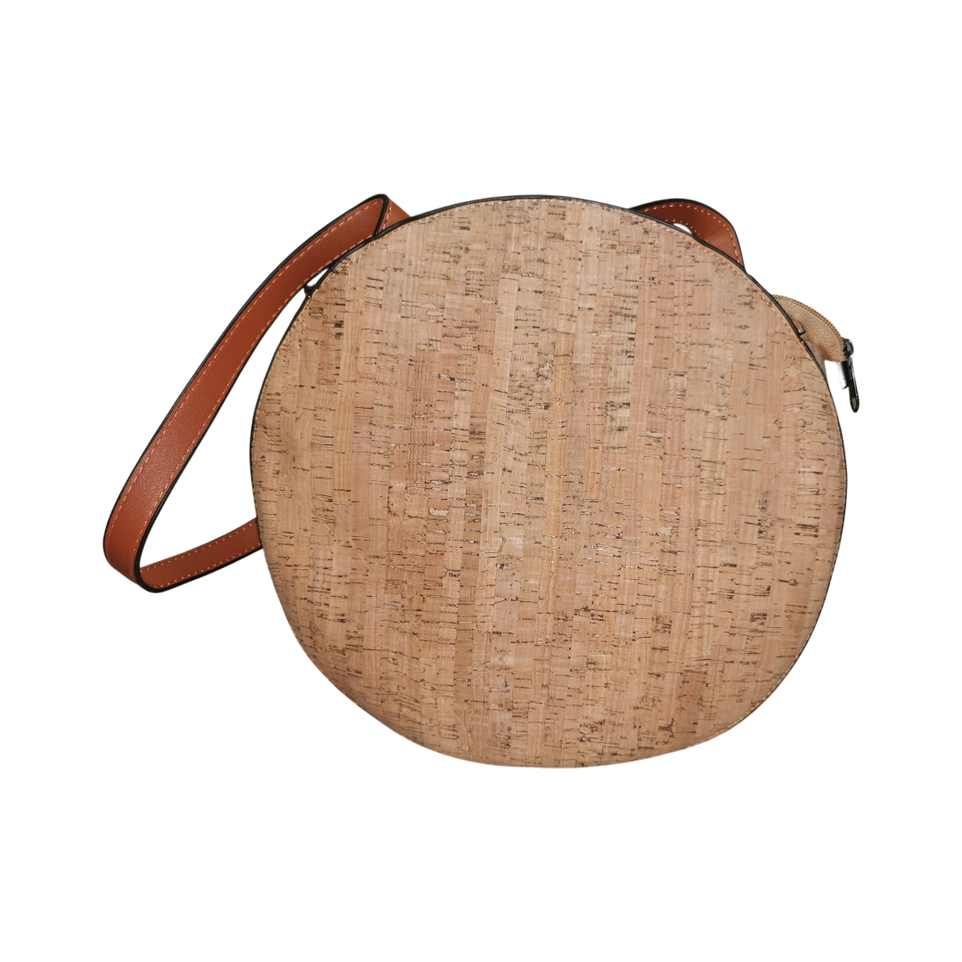 Fabricado en corcho natural sostenible, este bolso es ligero, resistente y 100% vegano. El corcho es un material renovable y eco-friendly que combina suavidad al tacto, durabilidad y un aspecto natural que hace de cada pieza algo irrepetible. Ningún bolso redondo es igual a otro gracias a los patrones propios del corcho.