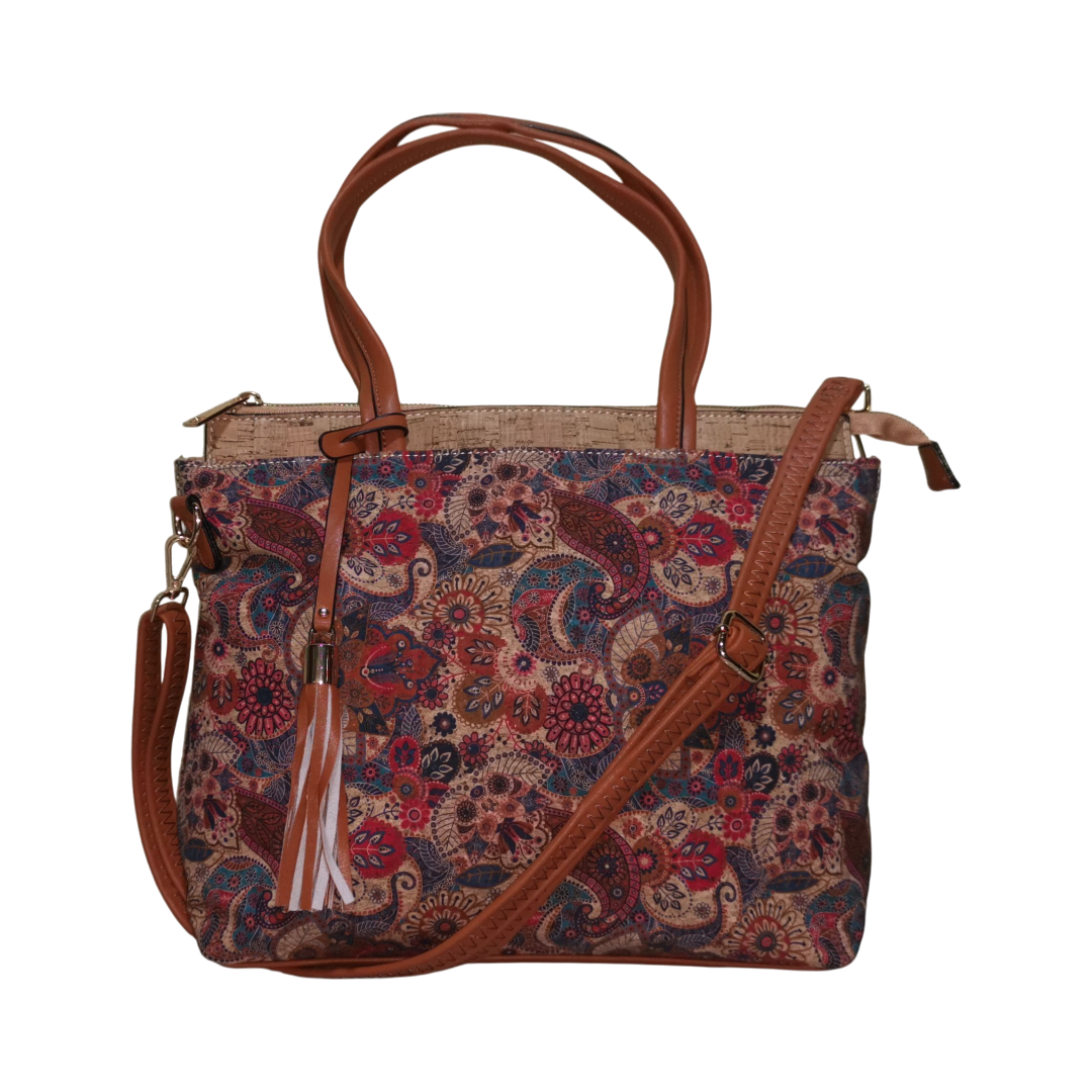 Bolso redondo de corcho con dos asas fijas. Eco-friendly, elegante y espacioso, ideal para llevar de mano o colgado al hombro.