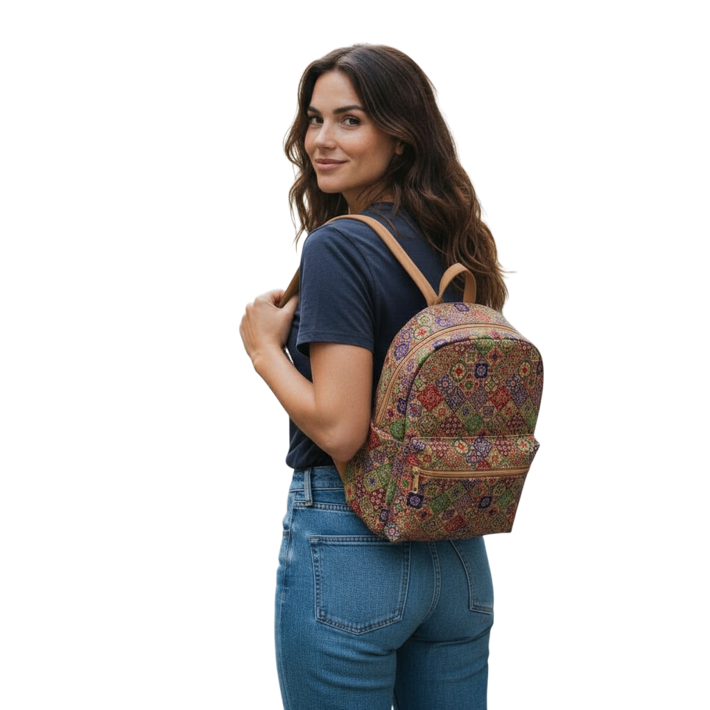 Si buscas una opción más estructurada y con detalles decorativos, te recomendamos la mochila con broche de corcho o la mochila estilo mensajero de corcho.