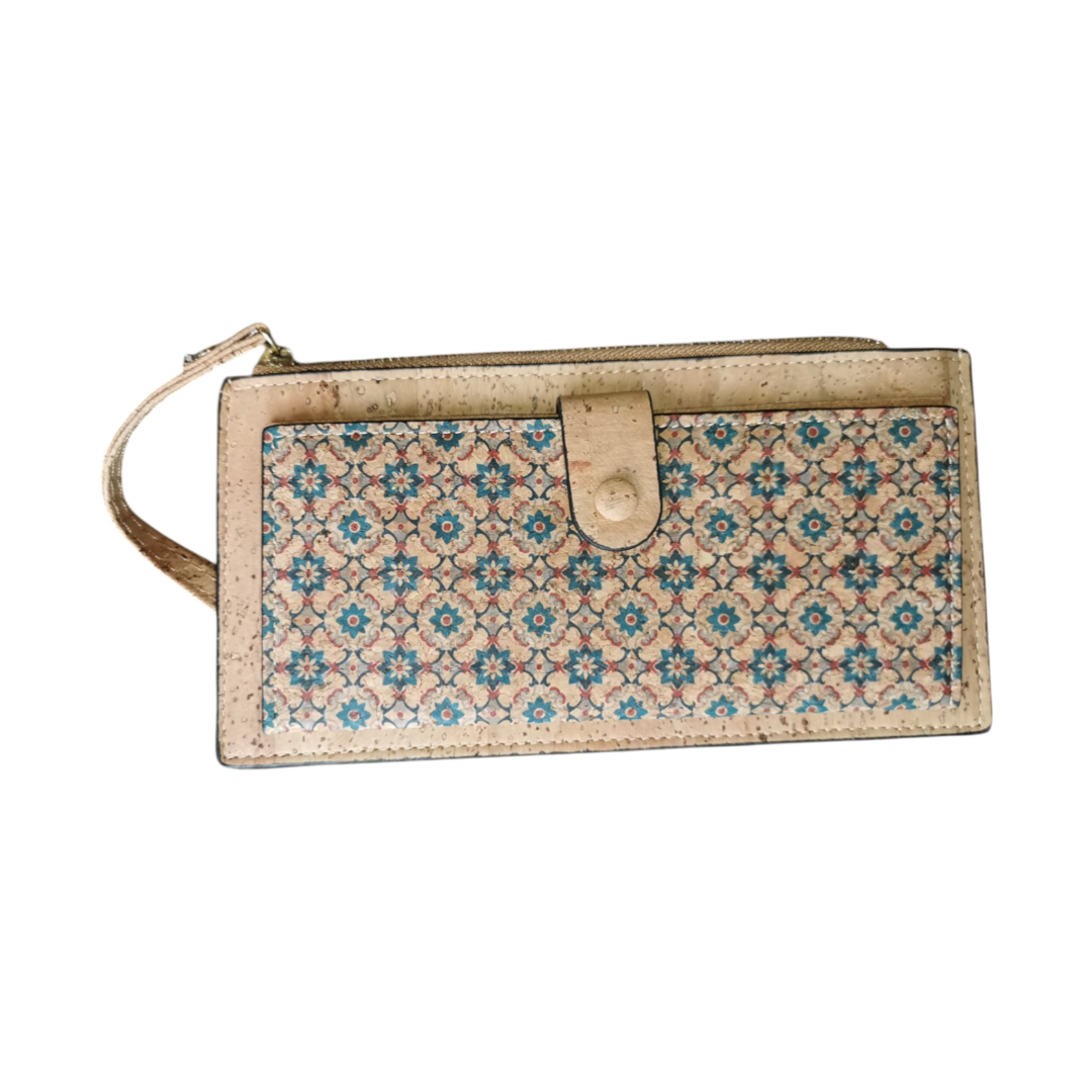 Delgada y alargada, esta billetera también puede usarse como clutch de mano en ocasiones formales o salidas rápidas, combinando practicidad con un estilo refinado. Al ser fabricada en corcho, cada pieza refleja el compromiso con la moda sostenible y el consumo consciente.